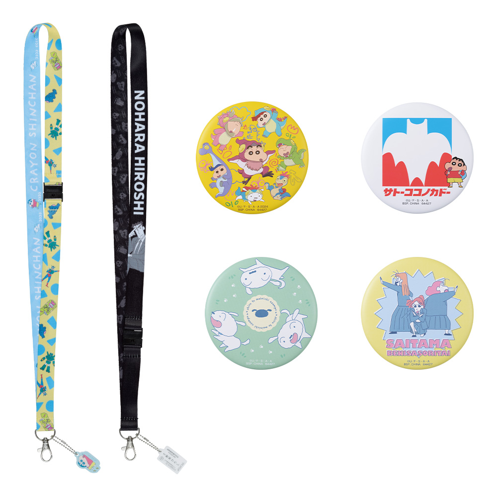 アクリルチャーム付きネックストラップ2種、缶ミラー4種の全6種からお好きなものをお選びいただけます。